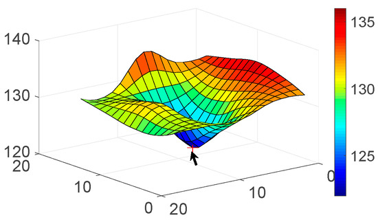 The valleys discovered in STEP 5(b) are further examined for their depth and positioned on the -axis. For a candidate feature point located on a retinal vessel, the valley with the maximum depth is at the lowest position of the -axis or global minimum, as shown in Figure 9(aii,bii). Therefore, a candidate feature point is discarded if the valley with the maximum depth is a local minimum, such as in Figure 9(cii).