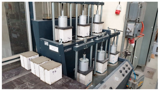 The test was performed 20 days after the screed application. The screeds were applied to one surface of the brick according to the manufacturer’s technological guide compiled for structures (for which the screed is intended).
