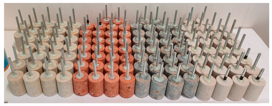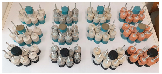 Four sets of specimens were prepared with different materials—ceramics, concrete, lime-sand and marl stone. All the test specimens were created according to the model as 108 cylinders with a diameter of 50 mm with a core bore. The bore was 8 mm in diameter and 30 mm deep.
