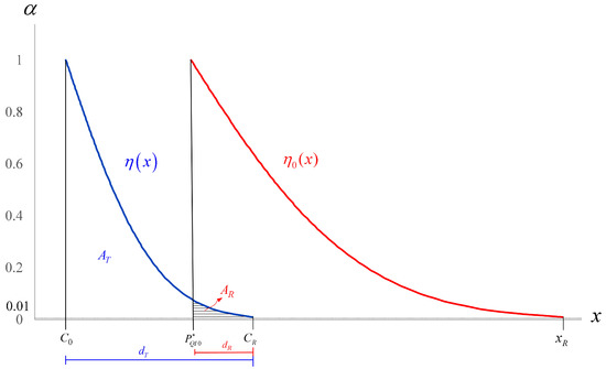 Obviously, the critical value is the subject of the evaluation, and the estimated value of the index varies. Therefore, it is assumed that set be the area in the graph of and set is the area in the graph of but to the right of the vertical line . Figure 2 displays a diagram of membership functions and .