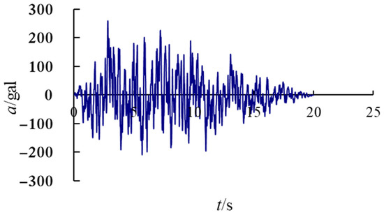According to the zoning map of ground motion parameters in China, the adopted seismic wave is as shown in Figure 7, which is a recorded accelerogram, in this study. The peak acceleration is 260 gal.