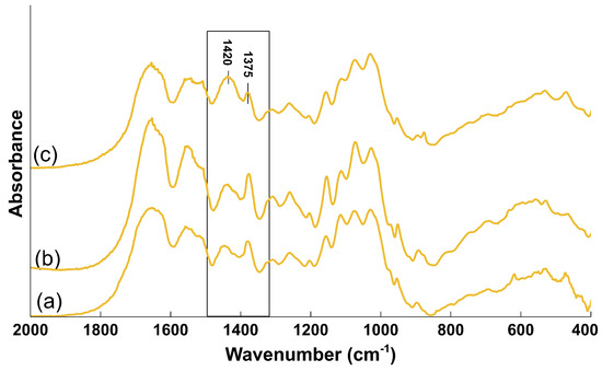 FTIR spectra of raw material (cicada sloughs) harvested in 2017 (a), 2019 (b) and 2020 (c).