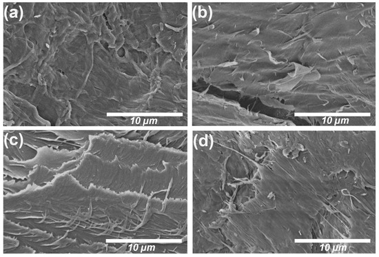 SEM images of: (a) extracted chitosan, (b) CS-80,(c) CS-90 and (d) CS-95.
