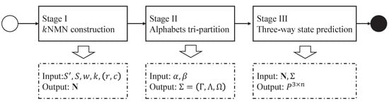 The trisecting–acting–outcome (TAO) model [] of thinking in threes [] to understand and process a whole via three distinct and related parts [] has inspired many novel and significant theories and applications. Recently, theories such as three-way formal concept analysis [] and three-way cognition computing [,] have focused on concept learning via multi-granularity from the viewpoint of cognition. The three-way fuzzy sets method [], three-way decisions space [], sequential three-way decisions [], and generalized three-way decision models [,,] have been proposed. Moreover, applications include the three-way recommender system [], three-way active learning [], three-way clustering [], tri-partition neighborhood covering reduction [], three-way spam filtering [], three-way face recognition [], and the tri-alphabet-based sequence pattern []. However, the extension of TAO to MTS prediction needs to be studied in depth.