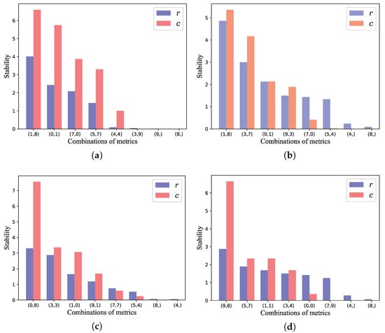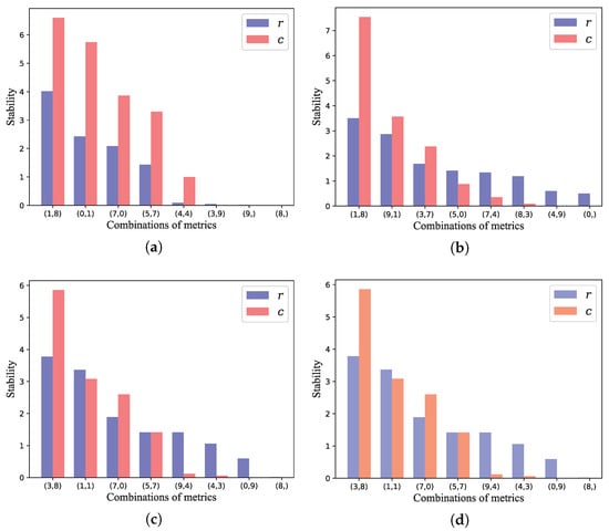 The most stable metric combinations for recall. (a) State. (b) Tri-state. (c) IFS-tri-state. (d) RFS-tri-state.