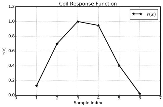 In order to design an optimal numerical scheme for the solution of the NMR equation, we need to have an in-depth understanding of the features of Equation (5). First, the reliability of the information contained in the NMR measurements varies with the changing positions of the core. When the core is at or close to the ends of the coil, due to the inhomogeneous distribution of the magnetic field, the measurements cannot fully reflect the real fluid contents, and therefore, the NMR signals are noisy, and their impacts on the fluid content inversion shall be suppressed.