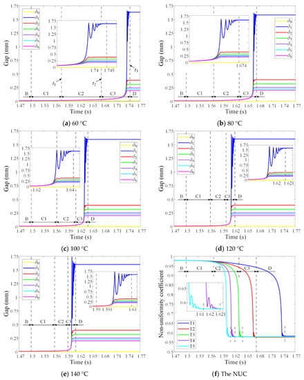 - The disengaged friction pair gaps decreased from the first friction pair to the sixth friction pair in sequence. With the increase of ATF temperature, the NUC first decreased then increased slightly, indicating that the disengaging uniformity first increased then decreased slightly. The disengaged friction pair gaps were distributed most uniformly when the ATF temperature was 80 °C.