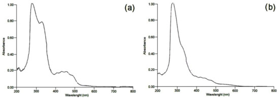 UV spectra of (a) tamarillo pulp flour and (b) tamarillo epicarp flour.