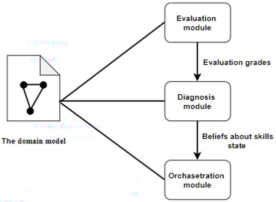 To take into account uncertainties, several research works use Artificial Intelligence (AI) techniques. They proved to be successful means to handle problems with incomplete and/or uncertain data [,]. As far as adaptive e-learning systems are concerned, fuzzy logic and Bayesian networks are some of the most used techniques to assess and diagnose student knowledge and skills [,]. However, their utility remains limited when it comes to combining information from different sources and capturing potential contradictions. In this work, we propose to use the theory of belief functions, also called Dempster–Shafer theory of evidence [], which is a popular mathematical framework that deals with uncertain information. It is used in several domains such as decision making, risk and reliability evaluation, [,] sensor data fusion, and aggregation operators []. In addition, to its ability to deal with uncertain and imprecise information, this framework provides a natural and powerful way for the expression and fusion of uncertain information from heterogeneous sources and handle the existing conflict between these sources [].