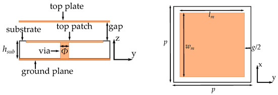 - Sievenpiper, D.; Zhang, L.; Broas, R.; Alexopolous, N.; Yablonovitch, E. High-impedance electromagnetic surfaces with a forbidden frequency band. IEEE Trans. Microw. Theory Tech. 1999, 47, 2059–2074. [Google Scholar] [CrossRef] [Green Version]