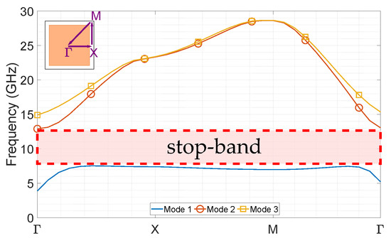 - Memeletzoglou, N.; Sanchez-Cabello, C.; Pizarro-Torres, F.; Rajo-Iglesias, E. Analysis of Periodic Structures Made of Pins Inside a Parallel Plate Waveguide. Symmetry 2019, 11, 582. [Google Scholar] [CrossRef] [Green Version]