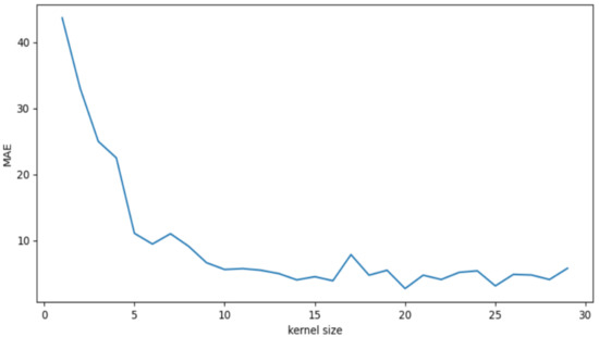 MAE under different kernel sizes.
