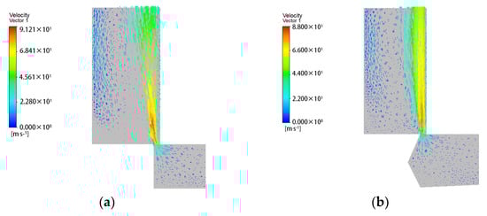Velocity vector diagram. (a) D1 = 14 mm; (b) D1 = 18 mm.