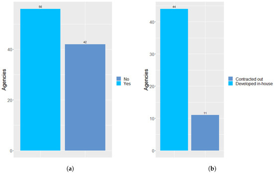 (a) shows if there is a textual database processing system in the agency or not, while (b) shows if the agency’s textual database processing system was developed in-house or contracted out.