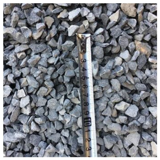 Clean fine sand, coarse sand, and gravel were selected as the testing materials in this study. The fine sand particles are uniform, with most of the particle sizes concentrated between 0.2 mm and 0.5 mm. This fine sand is classified as poorly graded sand (SP) according to the Unified Soil Classification System (USCS). The particle sizes of the coarse sand are concentrated between 3 mm and 5 mm, and the particle sizes of the gravel are concentrated between 2.36 mm and 13.2 mm. The fine sand, coarse sand and gravel have friction angles of 28°, 42° and 50°, respectively, based on interpretation of the linear Mohr–Coulomb failure envelope. The friction angles of soil were obtained from direct shear tests. The friction angle of 50 degrees for gravel is at the high end. This is attributed to the strong angularity of the gravel, as shown in Figure 1. Dry soil was used to eliminate the influence of moisture content on the interface characteristics. The soil was compacted in layers using volume control to ensure consistent relative density of 70%. The soil compaction at the top and bottom of the box was kept the same. Interface shearing was applied after the vertical displacement became stable under the applied normal stress.