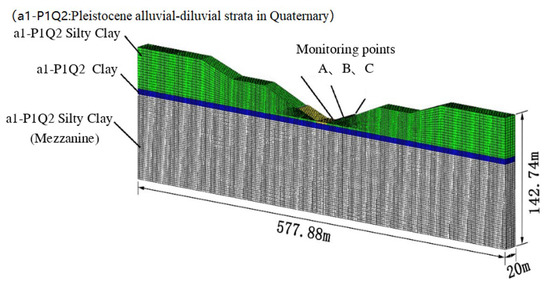 Three-dimensional finite element model of a typical section of the deep excavated canal.