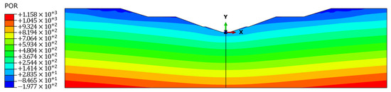 where is the structural stiffness matrix; is the nodal displacement matrix; and are the body and surface loads, respectively; is the equivalent load formed by pore pressure; and is the initial stress load.