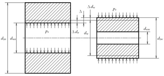 To determine the surface pressure in the joint zone and the load capacity of an interference-fit joint, formulas derived from analogy to the circular-symmetric Lame’s task are used [3]. According to this analogy, the condition of load transfer by the interference-fit joint is the initial difference between the hub inside diameter and the shaft diameter. After the joint has been assembled, surface pressure ps equal to the radial pressure occurs on the contact surface of the shaft and the hub (Figure 1).