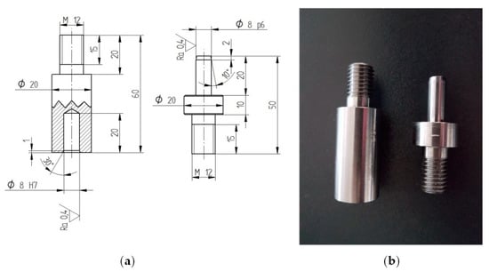 The object of the analysis is a press-fit joint of a 20 mm long shaft with a nominal diameter of ø 8 mm with four different fits and a 40 mm long hub with an outer diameter of ø 20 mm and an inside diameter of ø 8H7 (Figure 2a). The interference fit joint before assembly is shown in Figure 2b.