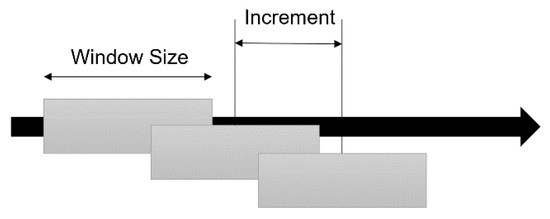 - Assume that the initial window time is , the sampling frequency is sf, and the initial window length is .
