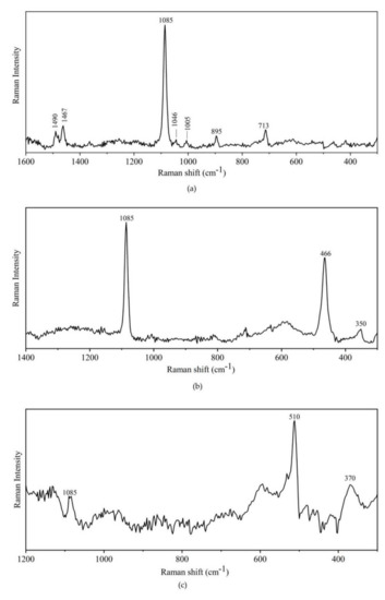 - Prieto-Taboada, N.; Gómez-Laserna, O.; Martínez-Arkarazo, I.; Olazabal, M.Á.; Madariaga, J.M. Raman Spectra of the Different Phases in the CaSO4–H2O System. Anal. Chem. 2014, 86, 10131–10137. [Google Scholar] [CrossRef] [PubMed]