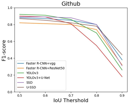 The F1-score from IoU = 0.5 to IoU = 0.9 on Github open dataset.