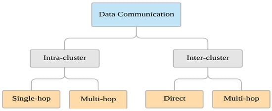 - Load balancing: Clustering is implemented to achieve low-energy intra-node communication and data processing [35]. Within the clustering architecture, the CHs perform the duty of data gathering and aggregation, long-range communication, and data forwarding. As such, the energy of the CHs deteriorates more quickly; this is why it is important to rotate these roles among all the network nodes using load balancing schemes to ensure energy efficiency;
