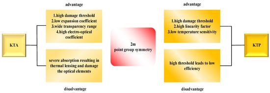 KTP crystal and KTA crystal belong to the isologue, the symmetrical structure of the 2 m point group, which has high hardness and excellent optical properties. They are nonlinear optical materials widely used in frequency conversions. The descriptions of the two crystals are shown in Figure 3.