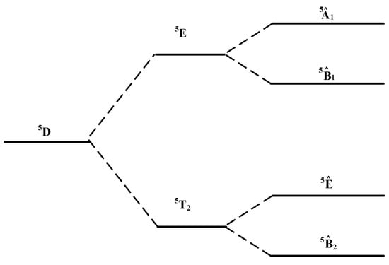 Fe: ZnSe is a four-energy level structure. When Fe2+ is doped into ZnSe, Zn2+ in the center of tetrahedron will be replaced. The ground state energy level 5D of the outermost electron 3d6 splits into duplex degenerate states 5E and triple-degenerate states 5T2 under the action of a crystal field []. Then the one-step orbital spin coupling splits the 5T2 state into three energy bands and the second-order orbital spin coupling splits the 5E state into five energy levels. The energy level diagram is shown as Figure 7.