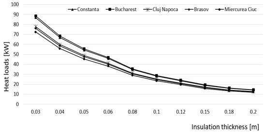 —insulation thickness [m]; There were considered thicknesses between 0.03 ÷ 0.2 m;