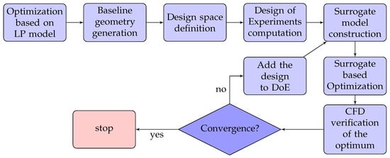 The iterative process described above improves continuously the surrogate accuracy and accelerates the optimization convergence. A global error is defined as
