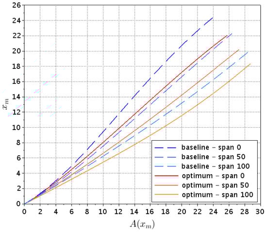 The profiles of the blade camberline in a conformal mapping plane are compared in Figure 14 for the baseline and optimal geometries. The abscissa of the coordinate system is
