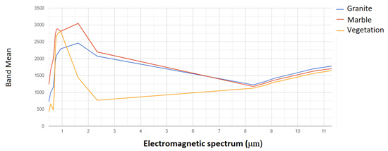 Spectral profiles of granite, marble, and vegetation in Shewa Shahbazgarhi Mardan.