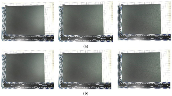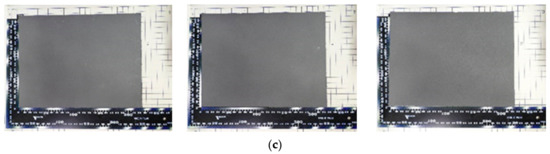 Each sample used for verification: (a) CNT spray paint. Coating thickness: 16 μm [left], 35 μm [middle], 76 μm [right]; (b) Carbon black paint: Coating thickness: 16 μm [left], 35 μm [middle], 76 μm [right]; (c) Graphite paint: Coating thickness: 15 μm [left], 36 μm [middle], 74 μm [right].