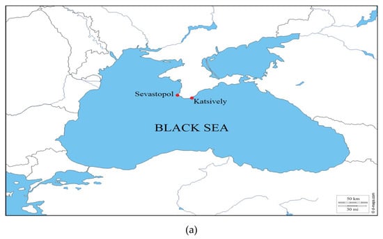 Katsiveli is a rural site located off large industrial cities and major highways. Katsiveli is located on Crimea’s southern shore. Its population is about 500–600 people, but it increases seasonally by up to 20-fold because Katsively is primarily a vacationing summer place. There is no other business but tourism and leisure. Thus, this is typical site to monitor background characteristics of atmospheric depositions [https://en.wikipedia.org/wiki/Katsiveli, (accessed on 3 December 2021)]. Sevastopol is the largest city and the major seaport of Crimea. It is one of the most industrially developed cities in Crimea with intensive navy and maritime activities. Its population is under 500,000 but might increase twofold on summertime. Thus, anthropogenic and industrial pressures are very typical for this location [https://en.wikipedia.org/wiki/Sevastopol, (accessed on 3 December 2021)].