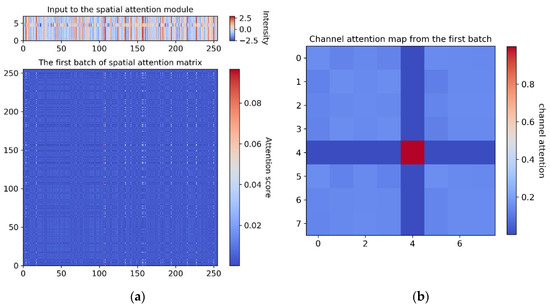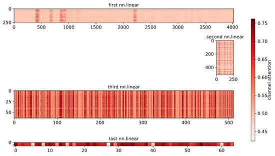 The channel attention module is designed based on [63], and we extend their method from three-dimensional image processing to a 1D time series analysis. The channel attention matrix is calculated through which can be described as: