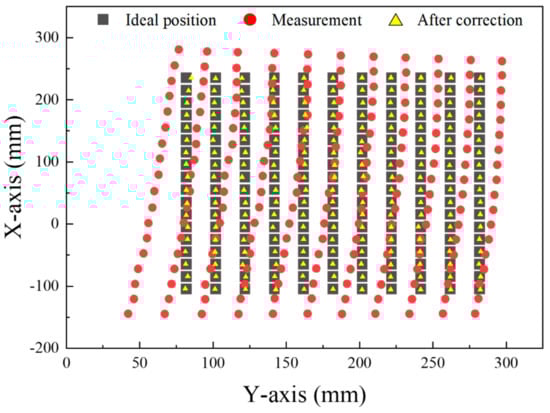 After finding all the coefficients by using Equation (22), these coefficients are applied back into Equation (19) and the actual position after correction is obtained: