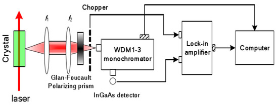 Lasers emitting in the 2 μm spectral region have increasingly gained attention from scientific researchers for plentiful applications in medical detection, atmospheric sensing, molecular spectroscopy, optical pumping of longer wavelength solid-state lasers, etc. [1,2,3,4]. Holmium (Ho) is the main doping material in the gain medium that produces lasers working in the 2 μm wavelength range. According to related reports, one of the methods to achieve high-efficiency Ho3+ laser emission is co-doping with Tm3+, and the other one is the direct resonant pumping of singly Ho-doped lasers [5,6,7,8,9,10]. The 2 μm laser radiation obtained through the latter approach has high conversion efficiency, is operable at room temperature, and has minimal thermal loading. In recent years, the search for new subject materials for efficient Ho3+ laser operation is focusing on gadolinium vanadate (GdVO4) crystal. The tetragonal uniaxial GdVO4 crystal was previously proved to be an extremely practical laser material for Tm3+ ions [11]. GdVO4, as a host material for thulium and holmium, has a significant feature for diode-pump lasers [12]. First of all, it has a giant thermal conductivity, which is conducive to the rapid cooling of the crystal during application. What’s more, its thermal conductivity is at least twice higher than that of YVO4, and even higher than that of YAG crystals, a widely known material with high thermal conductivity. A lot of studies have reported on diode-pumped Tm: GdVO4 lasers [13,14,15]. Additionally, both continuous-wave (CW) and Q-switched Ho: GdVO4 lasers pumped by Tm-fiber were also reported [16]. However, we have yet to find a report on diode-pumped Ho: GdVO4 laser.