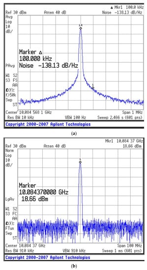 - Yang, Z.; Luo, B.; Dong, J.; Yang, T. X-band low phase noise loop oscillator with differential outputs. IEE Electron. Lett. 2015, 51, 1005–1007. [Google Scholar] [CrossRef]