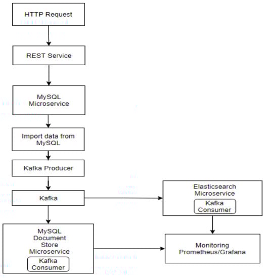Figure 3 shows the process of data replication through a REST service that has the role of uploading the data stored in relational MySQL and transmitting it to Kafka through a Kafka Producer.