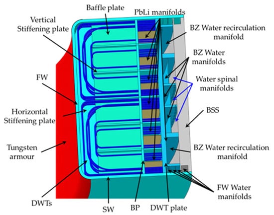 Figure 13). As previously mentioned, the WCLL BB manifold systems were partially re-designed in 2019, with both the coolant and PbLi paths modified. Nevertheless, most of the outcomes obtained from the previous manifold layout remain valid for the new configuration.