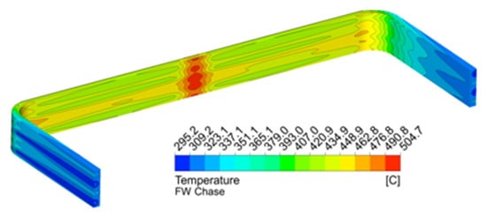 Concerning the FW–SW complex, the maximum temperature was foreseen to be 504.7 °C (