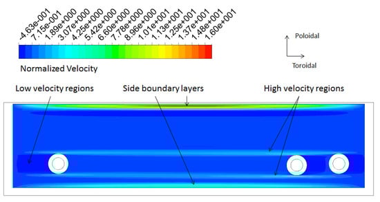 In order to simplify the analyses, these two regions were treated separately. The radial channels were first analysed using a fully developed model. This kind of models assumes that far enough from the 3D elements, the induced currents are cross-sectional (2D). The simulations enabled the computing of the influence of the conductor tubes on the steady-state PbLi velocity profile (