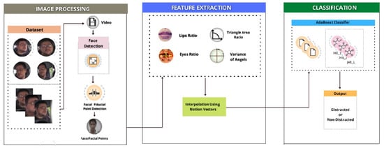 The structure of this paper is as follows. Section 2 discusses related work on the drivers’ distraction. Section 3 describes the proposed methodology for distraction detection due to drivers’ head panning, while the results and discussion are explained in Section 4. Section 5 presents the conclusion and discusses future work.