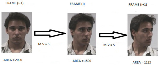 The feature value change between the and frames is then utilized to determine the feature value of frame. Consider Figure 4, where the feature ‘area’ must be determined for the frame, despite the fact that the areas for the frame and frame are 2000 and 1500, respectively. Furthermore, the computed magnitude of MVs between the frame and the frame is 5, as is the calculated magnitude of MVs between frame and frame.