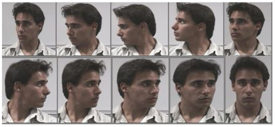 The Pointing’04 dataset is generated under a controlled environment with subjects that have variations in skin color, without glasses and with glasses. The pose variations are measured with values in the range of −90 to +90. Figure 7 shows the various images of this dataset with different poses. The dataset consists of 15 sets of images, where each set contains two sequences of 93 images with varying poses of the same subject. These sequences of images have 93 discrete values for head pose variations.