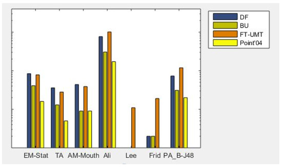 On the FT-UMT dataset, the proposed approach, ‘PA_B-J48’, shows the best performance, as can be seen in Table 4. The reason is that geometric features of ‘PA_B-J48’ work well on a subject with the beard as in the FT-UMT dataset. The second-best percentage accuracy is shown by the approaches EM-Stat and Ali.