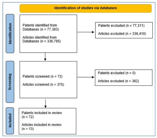 The search was carried out on 10 July 2020 with the initial screening resulting in 77,383 patents and 336,785 articles.