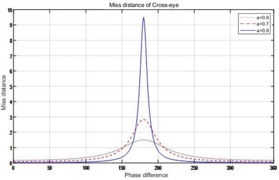 . Because the cross-eye gain is the function of two variables, cross-eye jamming performance is greatly influenced by