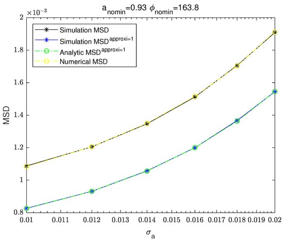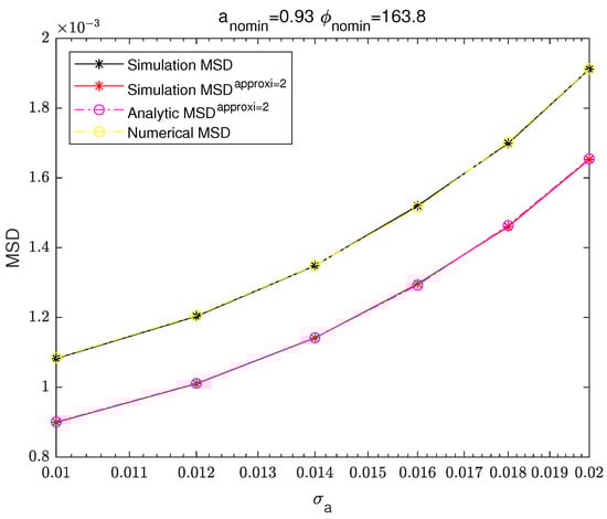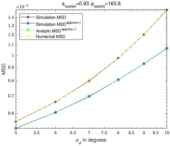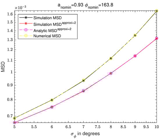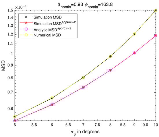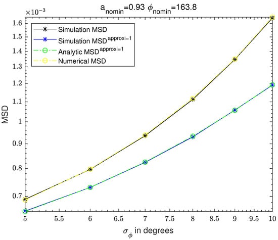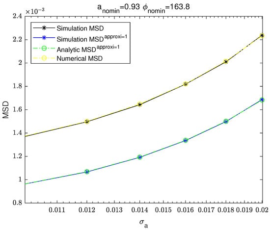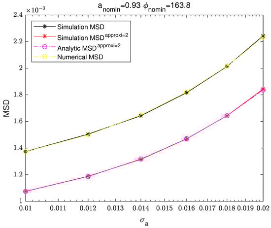 Figure 11 are the graphs of MSD results of the non-approximated simulation-based MSD, the first-order Taylor expansion-based simulation MSD, the first-order Taylor expansion-based analytic MSD, and the numerical integration-based MSD.